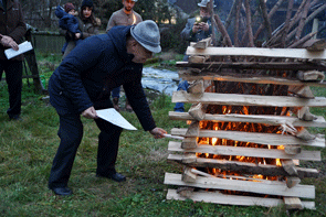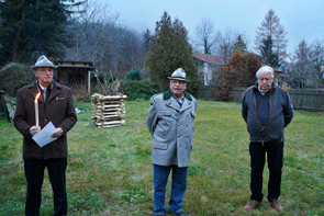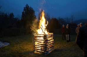 Den Auftakt machte die stvOrgRef des StV GRAZ, Kameradin Gabi Baier, es folgten die Feuersprüche des Landes-Standesführers Gottfried Mekis, des Landes-Schriftführers Thomas Gangl, von Ortsobmann OV Bad Schwanberg Dominik Knappitsch und den Abschluss machte der stvKassier des StV Graz Wolfgang Schmidt. Danach wurde mit den vier Fackeln der Scheiterhaufen angezündet. Als die Flammen hochloderten glänzten die Augen der Kameradinnen und Kameraden. Das war der Zeitpunkt das Edelweißlied gemeinsam anzustimmen. Es kam doch noch vorweihnachtliches Feeling auf und alle unterhielten sich in kameradschaftlicher Runde im Schein des wärmenden lodernden Feuers.