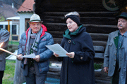 Der Obmann und Hausherr des OV Deutschfeistritz/Peggau Kurt Mirtschin hieß seinerseits alle auf das herzlichste Willkommen und bedankte sich für das zahlreiche Erscheinen. Erstmals konnten auch die vor kurzem beigetretenen Kameraden in diesem Kreis begrüßt werden. Besonders erfreulich wurde die Teilnahme von Ehrenobmann Adolf Pregetter aufgenommen. Das Vereinslokal war von Gattin und Tochter unseres Kameraden Kurt Mirtschin schön dekoriert worden. Auf den Tischen standen Gestecke mit Kerzen und Teller mit Gebäck. Vor dem Vereinslokal auf der Wiese hatte Kamerad Kurt Mirtschin bereits vormittags einen Scheiterhaufen für die Feier errichtet. Nach dem Anzünden der Fackeln und der Begrüßung wurde mit den Feuersprüchen die vorweihnachtliche Feier zum Jahresabschluss eröffnet.