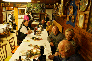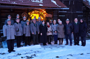 Gemeinsam wurde noch das Edelweißlied gesungen, ein Gruppenfoto aufgenommen und danach wieder in das warm geheizte Edelweißheim zurückverlegt, wo sich alle fröhlich miteinander unterhielten. Bald wurde bereits das traditionelle Gulasch mit Semmelknödel und Semmel aufgetragen und es wurde wieder ruhig in der geselligen Runde. Lange wurde noch in kameradschaftlicher Runde zusammen gesessen, bevor auch der diesjährige besinnliche Jahresausklang sein Ende nahm. Nacheinander verabschiedeten sich die Teilnehmer mit guten Wünschen für Weihnachten und Jahreswechsel. Ein besonderer Dank gebührt wie immer den Kameradinnen und Kameraden des Ortsverbandes Deutschfeistritz-Peggau, die wieder die Voraussetzungen für diese besinnliche Feier geschaffen und dazu noch für ausgezeichnete Kekse gesorgt und den Ausschank hervorragend übernommen hatten.
