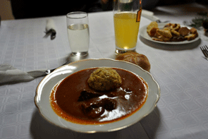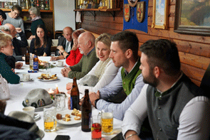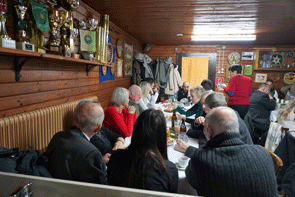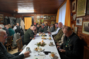 Gemeinsam wurde das Edelweißlied gesungen und bevor der Scheiterhaufen ganz niedergebrannt war wurde wieder in das Edelweißheim verlegt, wo Gulasch mit Semmelknödel und Semmeln serviert wurden. Kameradschaftlich und gemütlich ging dieser Jahresausklang in geselliger Runde zu Ende.