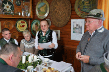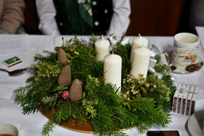 Der Protektor begrüßte die Anwesenden zu Beginn der Feier und der gedachte Verlauf wurde erklärt: der erste Teil ist der besinnliche, er wird um den Adventkranz gefeiert. Der zweite Teil gehört der Natur, dabei wird der Wintersonnenwende mit Feuer und Feuersprüchen gedacht. Der dritte Teil gehört der Geselligkeit, wo bei Mehlspeisen und Gulasch, bei Tee, Kaffee und Bier Kameradschaftspflege betrieben wird. Insgesamt konnte der Landesprotektor 38 Personen begrüßen. Die Kameradschaft vom Edelweiß Deutschfeistritz stellte mit 3 Kameradinnen und 4 Kameraden das Betriebspersonal für alle Gäste. Besonders erfreulich war das Antreten unserer Edelweiß-Jugend in größerer Zahl, die den Altersschnitt diesmal gewaltig nach unten drückte.