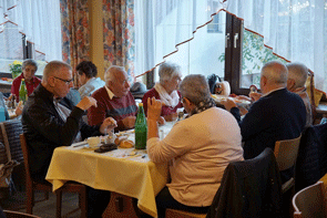 Nach der Führung machten die Teilnehmer einen Spaziergang durch die Fußgängerzone von Wiener Neustadt und nahmen im Restaurant Weißes Rössl das Mittagessen ein. Wie schon des Öfteren besuchten uns Kameraden aus Ternitz in NÖ, die dem OV Bad Gleichenberg angehören.