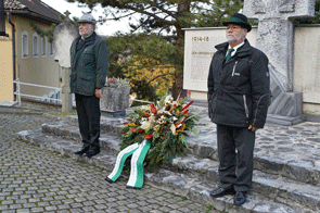 Stilvoll musikalisch umrahmt wurde dieses Gedenken von einem Quartett des Musikvereins Bairisch Kölldorf. Frau Bgmst. Christine Siegel überbrachte die Grußworte der Gemeinde und bedankte sich für die Tätigkeit der beiden Traditionsvereine und bei der Familie Gieferl für die Durchführung des Wortgottesdienstes. Auch Obmann Albert Trammer vom ÖKB bedankte sich bei allen Teilnehmern. Die stilvoll gestaltete Veranstaltung endete mit dem Auszug der Fahnenabordnungen.