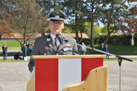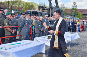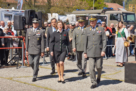 Die Ehrengäste, die angetretenen Soldaten des Heeres, die zahlreichen Kameradschaftsverbände mit ihren Fahnenabordnungen und die Festgäste wurden herzlich begrüßt. Danach erfolgte die Segnung der Fahnenbänder, die Ansprachen der Ehrengäste und des Präsidenten der Unteroffiziersgesellschaft Steiermark, Vzlt Othmar Wohlkönig.