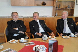 Unter dem Motto „Kennen lernen“ hat Oberst Jäger beide Kameradschaften zum Essen mit anschließender Diskussionsrunde zu sich eingeladen. Nach dem gemeinsamen Essen im großen Saal wechselten wir den Standort und begaben uns in die Cafeteria, wo wir von Major Manfred Scheucher empfangen wurden. Bei einem guten Kaffee, in angenehmer Atmosphäre, erfuhren wir von Oberst Klaus Jäger und Major Scheucher wie weit die Heeresreform bereits fortgeschritten ist, bzw. wie sie die Ziele und Öffentlichkeitsarbeit im In/Ausland erreichen wollen. Auch unsere Meinung in dieser Angelegenheit war gefragt. Es entwickelte sich eine Gesprächsrunde, welche bis in den Nachmittag hinein dauerte.