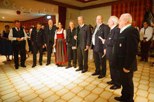 Danach übernahmen die „großen“ Schuhplattler traditionsgemäß mit ihren stilechten steirischen Schuhplattler den Tanzboden. Die Ballgäste waren von den Darbietungen der gesamten Trachtengruppe wie immer sehr beeindruckt. Ortsobmann Johann Reinprecht begrüßte im Anschluss gemeinsam mit dem Moderator Oberst aD Koska die Ballgäste, wobei eine große Anzahl an Ehrengästen willkommen geheißen wurde.