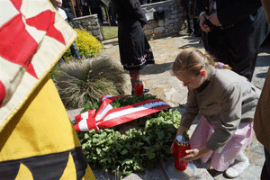 Zum Gedenken und zur Kranzniederlegung am Mahnmal der ehemaligen Fallschirmjäger haben sich am 19. Mai 2012 Vertreter der Öffentlichkeit, des Militärs (in Zivil), der Feuerwehr, des Roten Kreuzes und verschiedener Kameradschaften aus dem In- und Ausland sowie die Musikkapelle Van der Groeben eingefunden.