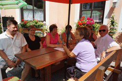 Vorbeigekommen waren am Anfang der Veranstaltung auch einige Kameraden des ÖKB Bairisch Kölldorf/Bad Gleichenberg mit ihrem Obmann Josef Posch. Ein besonderer Gast ließ es sich nicht nehmen der Einladung Folge zu leisten, nämlich der Webmaster der Kameradschaft vom Edelweiß, Franz Kerschbaum mit Gattin, die es sichtlich genossen, im Kreise des Ortsverbandes einen gemütlichen Sonntag zu verbringen. Die Veranstaltung fand im Gastgarten des Vereinlokales der Kameradschaft bei Rosi Pirker (Kirchenwirt) statt. Zum Dank dafür wurde ihr ein Blumenstrauß von Obmann Alfred Puchleitner und Organisator Pressereferent Kurt Bübl überreicht.