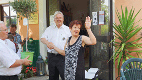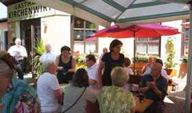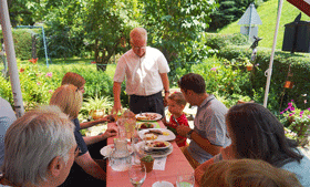 Nach den Eröffnungsreden stand dem kulinarischen Genuss nichts mehr im Wege. Der Grillmeister Oskar Niederl und die vielen Helferinnen hatten alle Hände voll zu tun, um den Andrang auf das Buffet zu meistern. Zum Nachtisch gab es viele Sorten Mehlspeisen, die von den Frauen der Kameraden selbst gemacht wurden. Für die musikalische Umrahmung sorgte ein südoststeirisches Trio. Bis in den späten Nachmittag hinein unterhielt man sich ausgelassen und so mancher Scherz lief über die Lippen. Wieder einmal bewahrheitet es sich, dass Kameradschaft, Freundschaft und Miteinander in unserer Gesellschaft einen wichtigen Stellenwert hat. Für den länger ausharrenden harten Kern gab es ein zusätzliches musikalisches Schmankerl: die Tochter unserer Kirchenwirtin, Cornelia Pirker spielte noch einige flotte Stücke auf der Geige und ihr Freund Willi begleitete sie dabei auf seiner steirischen Harmonika.