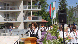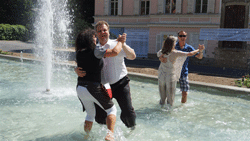 Am Veranstaltungsende gab es noch ein Highlight der besonderen Art: zu den Klängen des Donauwalzers stiegen tanzend die Wasserfontänen auf, was den anwesenden Besuchern sehr gefiel und einige Gäste dazu veranlasste, im neu gestalteten Brunnen zu tanzen. Ein weiterer Höhepunkt war auch eine Ausstellung von 18 Künstlern, die ihre Werke präsentierten.