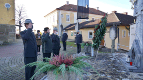Der Kranz wurde von den beiden Obmännern, der Kameradschaft vom Edelweiß und des ÖKB, am Mahnmal niedergelegt.