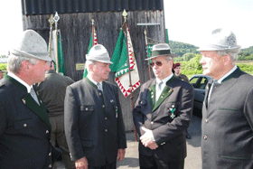 Über den Ablauf der Veranstaltung wurden wir von unserem Landesobmann der Kameradschaft vom Edelweiß, Josef Paul Puntigam, instruiert. Nach dem Antreten der Kameradenabordnungen mit Fahnen marschierte das Ganze schweigend in Richtung Denkmal.