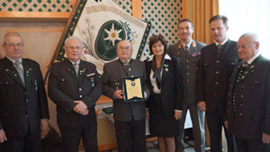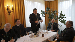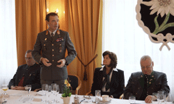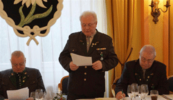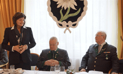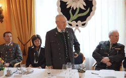 Als stellvertretender Kommandant der Kaserne Feldbach und Mitglied unseres OV, überbrachte Major Manfred Scheucher die Grüße des Kommandanten Obstlt Franz Krassnitzer. Er sprach die neue Reform und die nationale Sicherheitspolitik im Heer an. Er überbrachte den Dank an die Kameradschaft vom Edelweiß für ihre Öffentlichkeitsarbeit und Unterstützung als wehrpolitisch relevanter Verein. In diesem Zusammenhang stellte Major M. Scheucher sich als Vortragender für künftige wehrpolitische Diskussionen, Fragen undÖffentlichkeitarbeit zur Verfügung. Grußworte an die Teilnehmer der Veranstaltung richtete auch unser Kamerad und Abgeordneter zum Nationalrat Walter Rauch. Auch er nahm wie sein Vorredner Stellung zur neuen Heeresreform und erwähnte, dass er beim Neujahrsempfang in der Kaserne Feldbach sehr viele Informationen darüber erhalten hatte. Es freuteihn, dass im OV die Gemeinschaft noch einen hohen Stellenwert hat. Die Grußworte des Landesverbandes der Kameradschaft vom Edelweiß überbrachte LVO Bgdr i.R. Josef Paul Puntigam. Er sprach das allgemeine Geschehen in der Kameradschaft vom Edelweiß an und wies auf einige Details hin. Die Veranstaltungen des Landesverbandes können auf der Homepage www. kameradschaftedelweiss.at abgefragt werden. Im Anschluss daran wurden verdiente Mitglieder und Förderer unseres Ortsverbandes geehrt und ausgezeichnet.