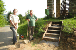 Gerade noch rechtzeitig zu Frühjahrsbeginn konnte die Stiege zur Aussichtswarte fertig gestellt werden. Bisher gelangte man nur über einen Wiesenhügel hinauf.