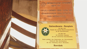 Im Vorjahr hatten Vandalen das Stiegen Geländer zur Aussichtwarte schwer beschädigt bzw. Teile davon überhaupt weggerissen. Heuer hat unser Ehrenobmann Fritz Pfleger dieses wieder instandgesetzt, sodass der Aufstieg auch für ältere und gehbehinderte Personen wieder gefahrlos möglich ist. Im Zuge dieser Instandsetzungsarbeiten wurde seitlich am Aufstieg zur Aussichtswarte eine Gedenktafel von Ehrenobmann Fritz Pfleger und Obmann ÖkR Rudi Monschein angebracht wo Besucher der Parapluiewarte darauf hingewiesen werden, wann diese errichtet und renoviert wurde. Unser Ortsverband hofft, dass sich solche Vandalenakte in Zukunft nicht mehr wiederholen.