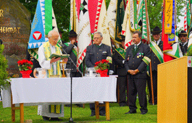 Eindrucksvoll war der Auftritt der Kameradschaftsverbände mit ihren Fahnenabordnungen vor den Ehrengästen. Die musikalische Gestaltung besorgte die Musikkapelle Trautmannsdorf, die auch die Gedenkmesse würdig umrahmte. Die zahlreichen Festredner nahmen im Zuge ihrer Ansprachen Stellung zum heurigen Gedenkjahr und verwiesen auf die Geschehnisse der Vergangenheit am Poppendorf-Berg.