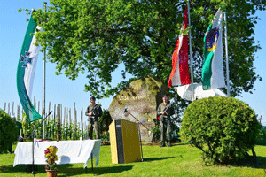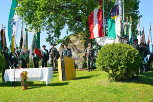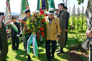 Nach dem Feldgottesdienst folgte die Kranzniederlegung am Gedenkstein, die vom Landesverbandsobmann der Kameradschaft vom Edelweiß Steiermark Bgdr iR Josef Paul Puntigam gemeinsam mit einem Kameraden des AAB 7 vorgenommen wurde. Mit den Grußworten der Ehrengäste und den Dankesworten der Organisation endete die offizielle Veranstaltung.
