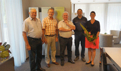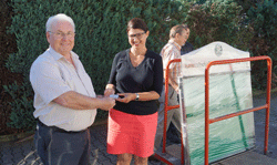 Schon seit Jahren steht hinter der Kirche von Bad Gleichenberg eine Vitrine, in der Fotos von Veranstaltungen bzw. Ankündigungen von Aktivitäten unserer Kameradschaft ausgestellt sind. Dieser Schaukasten war durch die jahrelange Verwendung schon stark verwittert und teilweise von Unkraut überwuchert. Aus diesem Grund wurde Kontakt mit der Pfarrgemeinde und unserem Pfarrer Georg Bankowski aufgenommen, um einen neuen Standort für eine neue Vitrine zu bekommen. Pater Georg ermöglichte es, dass der neue Schaukasten im Pfarrhof an der Hauswand montiert werden konnte. Die neue Vitrine, witterungsbeständig gefertigt aus Edelstahl, wurde uns von der Firma Kiefer, von Frau Mag. Astrid Kiefer, gesponsert. Sie übergab den Schlüssel am neuen Ort der Anbringung feierlich an den Obmann unseres Ortsverbandes, ÖkR Rudi Monschein. Als Dankeschön überreichte Rudi Frau Mag. Kiefer einen Blumenstrauß.