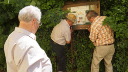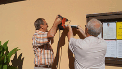 Im Anschluss machten sich unser Ehrenobmann Fritz Pfleger, Obmann Rudi Monschein und Fahnenoffizier Josef Grain daran, die alte Vitrine abzubauen und den neuen Schaukasten für jedermann ersichtlich an der Hauswand des Pfarrhofes zu montieren. Hier wurde letztendlich ein schöner Platz gefunden, wo in einer modernen, witterungsbeständigen Vitrine die Veranstaltungen und Aktivitäten unseres Ortsverbandes angekündigt werden können. Auf diesem Wege nochmals herzlichen Dank an Frau Mag. Kiefer und Pater Georg.