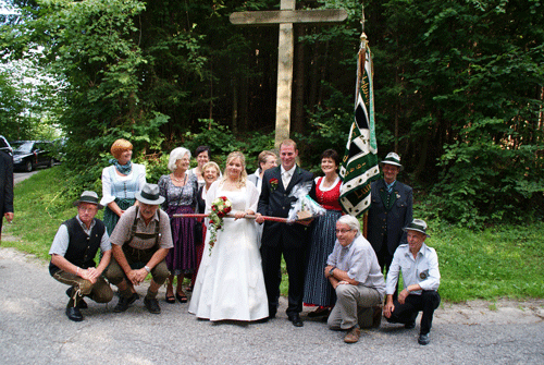 Am 11. August 2012 rückte der Ortsverband Deutschfeistritz-Peggau zu einem außergewöhnlich erfreulichen Ereignis aus: Unser Fahnenträger Christian ehelichte seine Claudia und so galt es, wie es Brauch ist, bei der Edelweiß-Hochzeit abzusperren um dem frisch vermählten Brautpaar einige Aufgaben zu stellen, die von Beiden zu meistern waren.