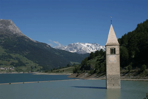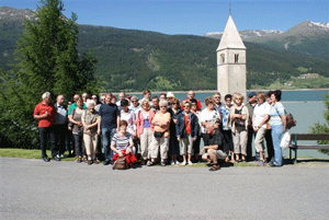 Bei herrlichem Wetter fuhren wir am 2. Tag zum Reschensee und anchließend über den Reschenpass nach Pfunds. Von dort ging es in die Schweiz nach Zernez, danach auf den Ofenpass, wo wir eine Mittagspause einlegten. Im Anschluss ging es durch das Münstertal nach Taufers (Grenze) über das mittelalterliche, von Stadtmauern umgebene Städtchen Glurns, Schluderns nach Meran und wieder zurück nach Leifers.
