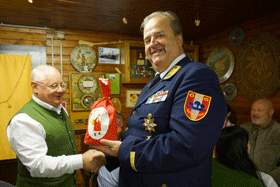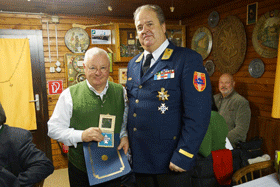 Zurück in der warmen Stube wurde LVO J. P. Puntigam vom Präsidenten der Österreichischen Lebens – Rettungs – Gesellschaft, Bundesverband Österreich, Bundesrettungsrat Davy Koller für seine Tätigkeiten in der Öffentlichkeit geehrt und ausgezeichnet. Zunächst wurde ihm ein Nikolaussackerl für sich und seine Frau Gemahlin ausgehändigt. Danach wurde unserem LVO für seinen großen Einsatz die Kat Medaille der ÖLRG - ÖBV und das Steckkreuz in Gold verliehen. Ebenso wurde ein Fahnenband der ÖLRG überreicht, das an die Edelweiß-Landesfahne übergeben wurde. Zum Abschluss überbrachte BRR Davy Koller die Weihnachts- und Neujahrsgrüße der ÖLRG.