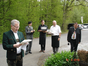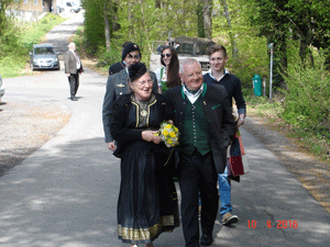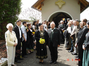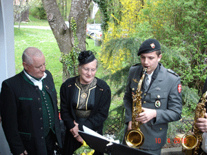 Beim Auszug aus der Kapelle brachten drei Generationen Lindmayr, Großvater, Sohn und Enkel, einen eigens für das Ehrenpaar von Toni Lindmayr komponierten Goldenen Jubiläums Marsch zur Uraufführung. Im Anschluss daran erfolgten die Gruß- und Dankesworte von Sohn Christian in Form eines Gedichtes. Zu aller Überraschung ergriff danach Herma selbst die Initiative und trug ihrerseits Gedanken einer langen Ehe in Gedichtform vor.