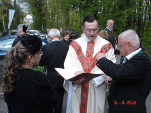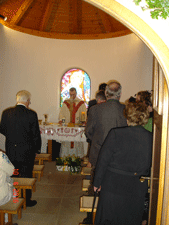 Nach der allgemeinen Begrüßung und dem dazugehörigen Willkommenstrunk wurde zum Edelweißlied Spalier bezogen und Militärkurat Mag. Sascha Kaspar zelebrierte die Jubiläums-Hochzeitsmesse in der Kapelle Rosenberg.