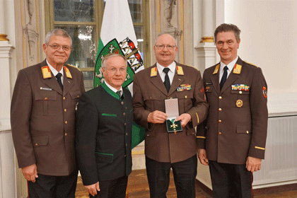 Verdienten Personen aus den Bereichen Wissenschaft, Wirtschaft, Kunst und Kultur sowie Ehrenamt wurden in Graz von Landeshauptmann Hermann Schützenhöfer für ihre Verdienste und Leistungen das Goldene Ehrenzeichen des Landes Steiermark verliehen. Auch unser Edelweißkamerad und langjähriger Obmann des Ortsverbandes Feldbach, Johann Reinprecht, nunmehr ABI a.D. war mit anderen Feuerwehrkameraden aus dem BFV Feldbach zu dieser Ehrung angetreten.