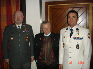 Dessen Präsident Josef Paul Puntigam hat mit seiner liebenswerten Gattin Herma die Dekoration des Ballsaales übernommen und mit viel Liebe zum Detail Gebirgs- und Fallschirmjägergeist hineingebracht. Eröffnet wurde der Ball durch den Obmann des Ortverbandes Feldbach der Kameradschaft vom Edelweiß, Josef Reinprecht, der sehr viele Ehrengäste aus allen Einsatzorganisationen, der örtlichen Stadt- und Gemeindevertretungen, Kameradschafts-, Miliz- und Reservistenverbänden sowie natürlich die zahlreich erschienenen Mitglieder des MilF-O, darunter den Kommandounteroffizier des Streitkräfteführungskommandos und Präsidenten der steirischen Unteroffiziersgesellschaft, den 2. Stellvertreter des Landeschefs Wien und natürlich den vollzählig erschienenen Landesvorstand Steiermark begrüßen konnte. Nach der Begrüßung wurde von allen das Lied vom Edelweiß gesungen und der Ball durch eine Showeinlage der Rattenberger Lausbuam, die einige Schuhplattler (für unsere ausländischen Kameraden: ein traditioneller Tanz der dem Balzverhalten von Auerhähnen gleicht, wo mit der flachen Hand auf Oberschenkel, Schuhsohlen, Hinterbacken und andere Körperteile geklatscht = platteln wird) vorführten, eingeleitet. Frenetischer Applaus zwang die Gruppe zu einer Zugabe, danach wurde mit dem Schneewalzer der Tanz eröffnet. Der Präsident des MilF-O war natürlich einer der ersten auf der Tanzfläche und zeigte mit seiner Gattin den jungen Bergkraxlern und Adlern, wie man eine flotte Sohle auf das Parkett legt. Der Ball war ein voller Erfolg, es wurde fast ohne Unterbrechung getanzt, gefeiert und natürlich mit den erschienenen alten Kameraden Erfahrungen ausgetauscht. Um Punkt Mitternacht wurde für Josef Paul Puntigam das Geburtstagslied angestimmt und das gesamte Ballpublikum schloss sich dieser Begleitung in ein neues Lebensjahr an. Zu den Klängen von Lili Marleen legte JPP mit seiner Gattin ein Geburtstagstänzchen aufs Parkett, danach wurde ein Spalier gebildet und das Fallschirmjägerlied angestimmt. Auch hier waren alle Anwesenden von ihren Sitzen aufgestanden und sangen mit Begeisterung mit. Dieser Ball war ein voller Erfolg, nicht nur in Sachen Tradition und Schulterschluss mit den alten Adlern und Gebirgsjägern, sondern auch eine würdige Veranstaltung, die unseren Veteranen ein Lächeln auf die Lippen und ein Glitzern in die Augen zauberte. Der Ballsaal war bis zum letzten Sitzplatz belegt und der Veranstalter macht sich schon heute Gedanken über die Sitzplatzauf- und -einteilung für das nächste Jahr, wo auch wieder mit dem zahlreichen Erscheinen unserer Mitglieder und Kameraden der Kameradschaft vom Edelweiß sowie des Militär Fallschirmspringer Verbundes Ostarrichi gerechnet wird. |