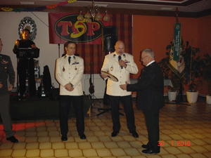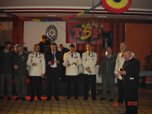 Anschließend wurde unserem Landesverbandsobmann Josef-Paul Puntigam, der auch Präsident des Militär Fallschirmspringer Verbundes Ostarrichi (MilF-O) ist, von den MilF-O Landeschefs Stmk zum Geburtstag eine Uhr mit MilF-O-Logo überreicht, die von einem Kameraden der sich zurzeit auf Auslandseinsatz in Bosnien befindet, in Handarbeit angefertigt wurde. Der nächste Höhepunkt ließ nicht lange auf sich warten, denn die beiden aus Wien angereisten Zwillingsbrüder Brossmann waren von der steirischen Feierlaune so angesteckt, dass sie gegen Mitternacht zu rockigen Rhythmen einen Synchrontanz hinlegten, der ihnen den Namen „Torpedo-Twins“ einbrachte und alle Anwesenden begeisterte. Ausgelassen wurde getanzt und gefeiert und erst in den frühen Morgenstunden verließen die letzten Gäste unseren traditionellen Gebirgs- und Fallschirmjägerball. Der Veranstalter freut sich schon auf das nächste Jahr, wo auch wieder mit dem zahlreichen Erscheinen unserer Mitglieder und Kameraden der Kameradschaft vom Edelweiß sowie des Militär Fallschirmspringer Verbundes Ostarrichi gerechnet wird.