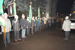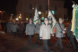 Nach dem Sammeln vor dem Pfarrhof marschierte ein eindrucksvoller Zug, anführt von der Stadtmusik Feldbach, zur Kirche, wo der Gedenkgottesdienst und die heilige Messe abgehalten wurde. Nach der Messe wurde wieder in Formation zum Pfarrhof zurückmarschiert, wo nach der Abschlussaufstellung die Fahnen zu den Klängen der Landeshymne zur Versorgung abrückten.
