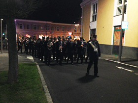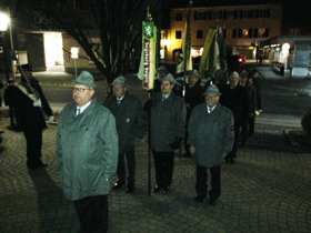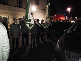 Nach der Messe wurde wieder in Formation zum Pfarrhof zurückmarschiert, wo nach der Abschlussaufstellung die Fahnen zu den Klängen der Landeshymne zur Versorgung abrückten.