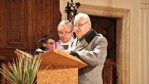 Die Abordnungen sammelten sich vor dem Portal der Stadtpfarrkirche, wo alle Teilnehmer von Stadtpfarrer Mag. Friedrich Weingartmann begrüßt und in die Kirche geleitet wurden. Nach der Einnahme der Aufstellung in der Kirche begrüßte Stadtpfarrer Mag. Weingartmann auch alle anderen Anwesenden in der Kirche, die an diesem Gedenkgottesdienst teilnahmen und hielt die heilige Messe in eindrucksvoller und besinnlicher Weise. Er erinnerte mit eindruckvollen Worten an die grausamen Geschehnisse in Stalingrad. Die Rückschau auf diese Zeit und die Fürbitten wurden von LVO Bgdr iR Josef Paul Puntigam vorgetragen.