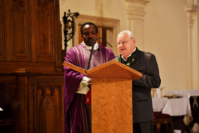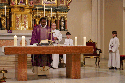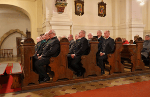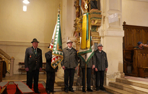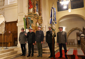 Die Kameradenabordnung wurde von Kaplan Sevadata vor dem Kirchenportal abgeholt und in die Kirche geleitet, wo links und rechts im Vorfeld des Altars Aufstellung genommen wurde.