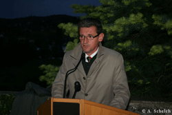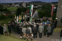 Wie arm die Menschen, die sich an solchen Feiern nicht beteiligen können, wollen oder getrauen. Jene, die unentwegt von Solidarität schwätzen jedoch über Null Zivilcourage verfügen. Die Anwesenden wurden aber auf das Reichlichste entschädigt! Auch der Wettergott hielt inne und verschonte die Anhöhe von den heftigen Unwettern, die in der gesamten Steiermark niedergingen. Lediglich ein stärkerer Wind umspielte das Denkmal, konnte jedoch keinem Redner die Worte von den Lippen reißen.