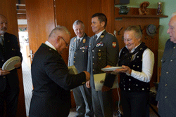 Als weiterer Höhepunkt gestaltete sich die Ehrung und Auszeichnung verdienter Kameradinnen und Kameraden unseres Verbandes. So wurden unsere Kameradin Herma Puntigam mit dem Edelweiß-Ehrenteller Nummer 1, Ortsobmann Johann Reinprecht mit dem Ehrenkreuz in Gold, die Fahnenoffiziere Heinrich Promitzer und Egon Ozbot sowie Webmaster Franz Kerschbaum mit dem Ehrenkreuz in Silber und Landesschriftführer Henry Hanschek mit einer Dankesurkunde des Vorstandes ausgezeichnet.