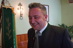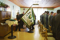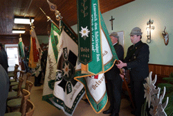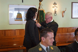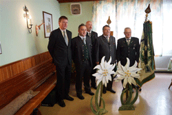 Um 13:30 Uhr wurde der zweite Teil durch den LVO eröffnet, in dem er die Ehrengäste, nach dem Einzug der Fahnen zum Edelweißlied, begrüßte. Darunter als Vertreter der wehrpolitisch relevanten Vereine der Präsident der steirischen Offiziersgesellschaft, GenMjr Mag. Heinrich Winkelmayer, der Präsident der steirischen Unteroffiziersgesellschaft, Vzlt Othmar Wohlkönig und den Vizepräsidenten des steirischen Kameradschaftsbundes, Franz Ortauf. Die Einsatzorganisationen wurden vertreten durch den Polizeichef des Bezirkes Südoststeiermark, Obstlt Herbert Karner, den Kommandanten des JgB 17, Obstlt Bernhard Köffel, des stellvertretenden Kommandanten des AAB 7, Mjr Manfred Scheucher und den Chef der hiesigen Feuerwehr, HBI Manfred Seidl. Die Vertreter der Politik wurden angeführt vom Bezirkshauptmann des Bezirkes Südoststeiermark, HR Dr. Alexander Majcan. Gekommen waren auch die Bürgermeister von Frutten-Gießelsdorf, Josef Großschädl und der Bürgermeister von St. Anna am Aigen, Hannes Weidinger. Besonders begrüßt wurden auch Vater Markus und Sohn Kajetan Lindmayer, die den Festakt am E-Piano untermalten. Nach der Begrüßung wurde den im abgelaufenen Jahr verstorbenen Edelweißmitgliedern und auch aller in den Weltkriegen Gefallenen gedacht . Im Anschluss hielt unser LVO die Laudatio zu 60 Jahre Edelweiß, von der Gründung bis zum heutigen Tag und brachte zum Ausdruck, dass er sehr stolz auf unsere Kameradschaft sei. Ein weiterer erfreulicher Akt war die danach folgende Angelobung der Gattin des Webmasters, Christine, als ordentliches Mitglied der Kameradschaft vom Edelweiß, die vom LVO persönlich vorgenommen wurde und die nun auch unserem Ortsverband angehört.