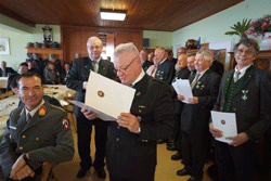 Nach vorgenommener Auszeichnung und Ehrung erhielt unser Landesverbandsobmann Josef Paul Puntigam aus den Händen seines 3. Stellvertreters Kurt Mirtschin eine Ehrenurkunde für sein jahrzehntelanges, unermüdliches Wirken, beurkundet durch die gesamte Kameradschaft vom Edelweiß.