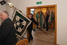 Nach dem Bericht der Kassenprüferinnen wurde der Antrag auf Entlastung des Kassiers und des Vorstandes gestellt, der vom Gremium einstimmig angenommen wurde. Auch wurde der neue Landesschriftführer vorgestellt, der aufgrund des Ausscheidens der Schriftführerin in diese Funktion kooptiert wurde. Nach einer kurzen Pause wurden die Ehrengäste in den Saal gebeten und mit dem Einzug der Fahnen und dem Singen der Landeshymne durch alle Anwesenden wurde der offizielle Teil des Landesverbandstages eröffnet.