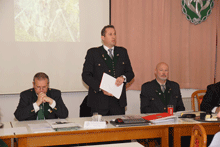 Im Anschluss daran erfolgte die Kranzniederlegung am kleinen Soldatenfriedhof und die Segnung des Kranzes durch Militäroberkurat Mag. Sascha Kaspar auf den Gräbern der Gefallenen. Dazu wurde der Zapfenstreich geblasen und drei Salutschüsse mit der Kanone abgegeben. Der LVO wies in die weitere Vorgangsweise ein und es wurde nach Paurach zum Gasthof Schwarz verlegt. Nach dem Mittagessen wurde der vereinsrechtliche Teil des Landesverbandstages eröffnet und der gesamte Vorstand erstattete jeweils nach Funktion den Standes- bzw. Tätigkeitsbericht des abgelaufenen Verbandsjahres.