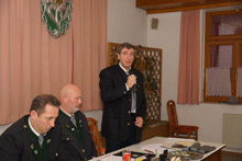 Der LVO begrüßte die Ehrengäste, die Ehrenmitglieder der Kameradschaft sowie alle Abordnungen der Ortsverbände und hob in seiner folgenden Rede die Bedeutung der Kameradschaft vom Edelweiß in der Gesellschaft unserer Zeit hervor. Nach dem Auszug der Fahnen erhielten nun die Obmänner die Gelegenheit, kurz über ihre Tätigkeiten in den jeweiligen Ortsverbänden zu berichten. Danach hatten die Ehrengäste die Ehre des Wortes und überbrachten ihre Grußbotschaften. Es folgte im Anschluss ein erfreulicher Abschnitt der Sitzung, der als Tagesordnungspunkt Neuaufnahmen, Ehrungen und Auszeichnungen vorsah. So hat der Verband die große Ehre und Freude, Militäroberkurat Mag. Sascha Kaspar als Kameraden unter dem Edelweiß einzureihen und ab sofort einen Edelweiß-Kurat an der Seite zu haben.