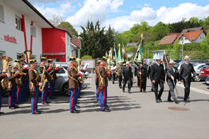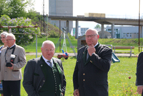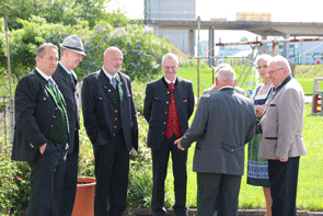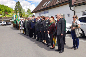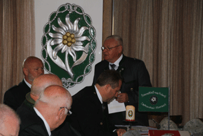 Nachdem keine Fragen und Anträge zu beantworten waren, wurde der Landesverbandstag für eine kurze Pause unterbrochen. Die mittlerweile eingetroffenen Ehrengäste wurden in Empfang genommen und die Festversammlung trat geschlossen auf dem Vorplatz der Volkshilfe an. Für die musikalische Umrahmung hatte auch die Artillerie-Traditionskapelle Von der Groeben Aufstellung bezogen und mit dem Einmarsch der Fahnenabordnungen zur Bundeshymne begann der Festakt zur Feierstunde zum 65. Bestandsjubiläum der Kameradschaft vom Edelweiß.