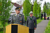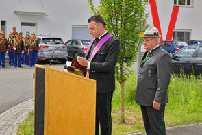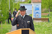 LVO Puntigam nahm die Meldung durch den Landeskommandanten entgegen und begrüßte danach die Ehrengäste, die angetretenen Abordnungen der Kameradschaft vom Edelweiß, des ÖKB, befreundeter Traditionsverbände sowie alle angereisten Kameradinnen und Kameraden und wies in den Ablauf ein.