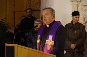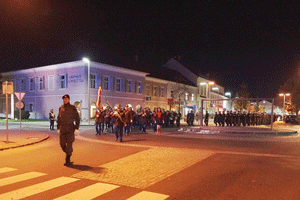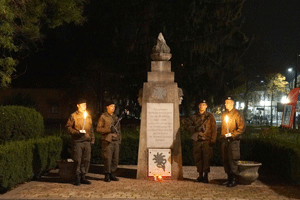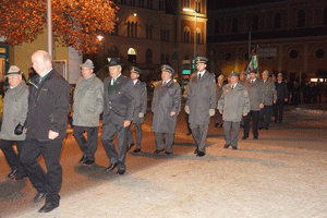 Nach Erklärung des gedachten Verlaufes und Vergatterung der angetretenen Teilnehmer durch den Kommandanten der ausgerückten Truppe und stellvertretenden Kommandanten des Artillerie- Aufklärungsbataillons 7, Obstlt Manfred Scheucher, marschierte der gesamte Zug unter den musikalischen Klängen der Artillerietraditionskapelle Von der Groeben über die Ringstraße und den Hauptplatz zum Taborplatz, wo bereits die zahlreich erschienene Bevölkerung vor der Kirche wartete. Nach der Aufstellung der Abordnungen vor der Kirche und der Gedächtnisstätte hielt Dechant Mag. Weingartmann in ergreifender Weise die Gebete zum Totengedenken und wurde dabei vom Gesangsverein Feldbach musikalisch unterstützt.