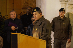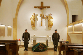 Die Gedenkrede hielt der Kommandant des AAB 7, Obstlt Kraßnitzer. Im Anschluss erfolgte zu den Klängen des „guten Kameraden“ die Kranzniederlegung in der Kirche.