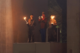 Zum Abschluss der Zeremonie intonierte die Artillerietraditionskapelle Von der Groeben den Zapfenstreich und ließ auch einige Märsche erklingen. Daraufhin übernahm der Kommandant der ausgerückten Truppe wieder das Kommando und ließ Richtung Hauptplatz abmarschieren.