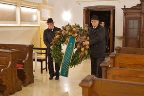Zum „Guten Kameraden“ wurde von den Ehrengästen, Obleuten und Kommandanten ein Kranz in der Kirche niedergelegt.