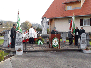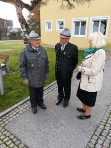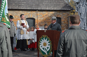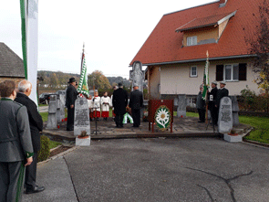 Der Obmann der K.v.E. Hermann Windbacher begrüßte den Militärseelsorger und dankte ihm für die pastorale Betreuung der Feier. Weiters begrüßte er Bürgermeister Bernd Hermann, Vizebürgermeister Günter Steinbauer und die Gemeinderäte, den Vorsitzenden des Pfarrgemeinderates Karl Klug, Landesverbandsobmann der K.v.E. Brig. i. R. Josef Paul Puntigam, die Abordnungen des ÖKB, mit Obmannstellvertreter Helmut Prattes und Ehrenobmann Johann Reinbacher, und der K.v.E. mit Ehrenobmann Günther Kobald, sowie die Abordnungen der Feuerwehren mit ihren Kommandanten Bernd Kiefer, Mag. Thomas Prattes und Wolfgang Fellner. Ferner begrüßte er die Marktmusikkapelle mit Kapellmeister Oskar Lenz und bedankte sich für die musikalische Umrahmung.