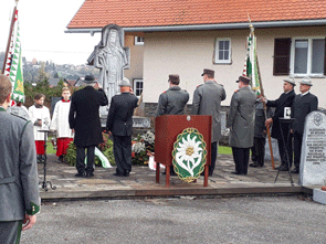 „Gedenken an die - an die sonst niemand denkt! Der Friede ist ein Meisterwerk der Vernunft! Vernunft, ist die Erkenntnis, dass das Zusammenleben Kompromisse verlangt, oft zum eigenen Nachteil. Wer nur auf seine Meinung pocht, auf seinen Vorteil beharrt, trifft keinen Kompromiss. Wer den Mut zur Demut nicht aufbringt, wird zum Erfüllungsgehilfen des Unfriedens! Diese europäische Erfahrung machten unsere Urgroßväter, Großväter und Väter. Sie zahlten ein schlimmes Lehrgeld. Erst die unzähligen Toten der Kriege des 20. Jahrhunderts brachten die Europäer zur Vernunft! Erst dieses Opfer von fast 80 Millionen getöteten Menschen, Frauen und Männer, Greisen und Kindern, Soldaten und Nichtsoldaten, führte zu einem Nachdenkprozess. Ohne dieses unvorstellbare Leid, ohne dieses unvorstellbare schuldlose Sterben von Menschen, wären wir in Europa nicht zur Vernunft gekommen. Viele Staaten auf dieser Welt haben diesen Vernunft -Prozess noch vor sich! Ein Blick nach Afghanistan, in den Irak, Iran, Syrien, Ukraine, Palästina, Gazastreifen, Afrika beweist das eindrücklich! All dies passiert dort 73 Jahre nach dem zweiten Weltkrieg!! Wir haben gute Gründe den Überlebenden der Apokalypse dankbar zu sein! Sie, die Überlebenden des Grauens, haben als erste daraus gelernt und diesen Lernprozess politisch erfolgreich umgesetzt Sie haben uns ein solides Fundament an friedlichen Zielen und zukunftsfähigen Werten uns übergeben. Auf den Massengräben der Soldaten des 1. und 2. Weltkrieges entstand der Wunsch nach einem friedlichen Europa. Wer dies vergisst, wird schuldig an neuen Kriegen. Lasst uns in Ehrfurcht, vor dem Tod von Millionen von Soldaten, vor den Opfern von Krieg und Gewalt dankbar für den Frieden in Sicherheit und Freiheit sein. Friede ist etwas Gutes, wenn er durch Sicherheit und Freiheit gestützt ist. Auf der Kasernenmauer von Straß steht: „Wenn die Guten nicht fechten, so siegen die Schlechten!“ Ich ergänze - wenn die Dankbaren nicht fechten, so siegen die Undankbaren. Unfriede ist die Folge! Wir, von den Soldatenverbänden, werden weiterhin dankbar für das Gute eintreten! Heute und alle Tage! So wahr uns Gott helfe!“